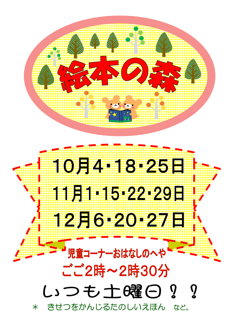 ホーム > イベント情報 > 絵本の森(令和7年10月4日(土)午後2時~2時30分)
