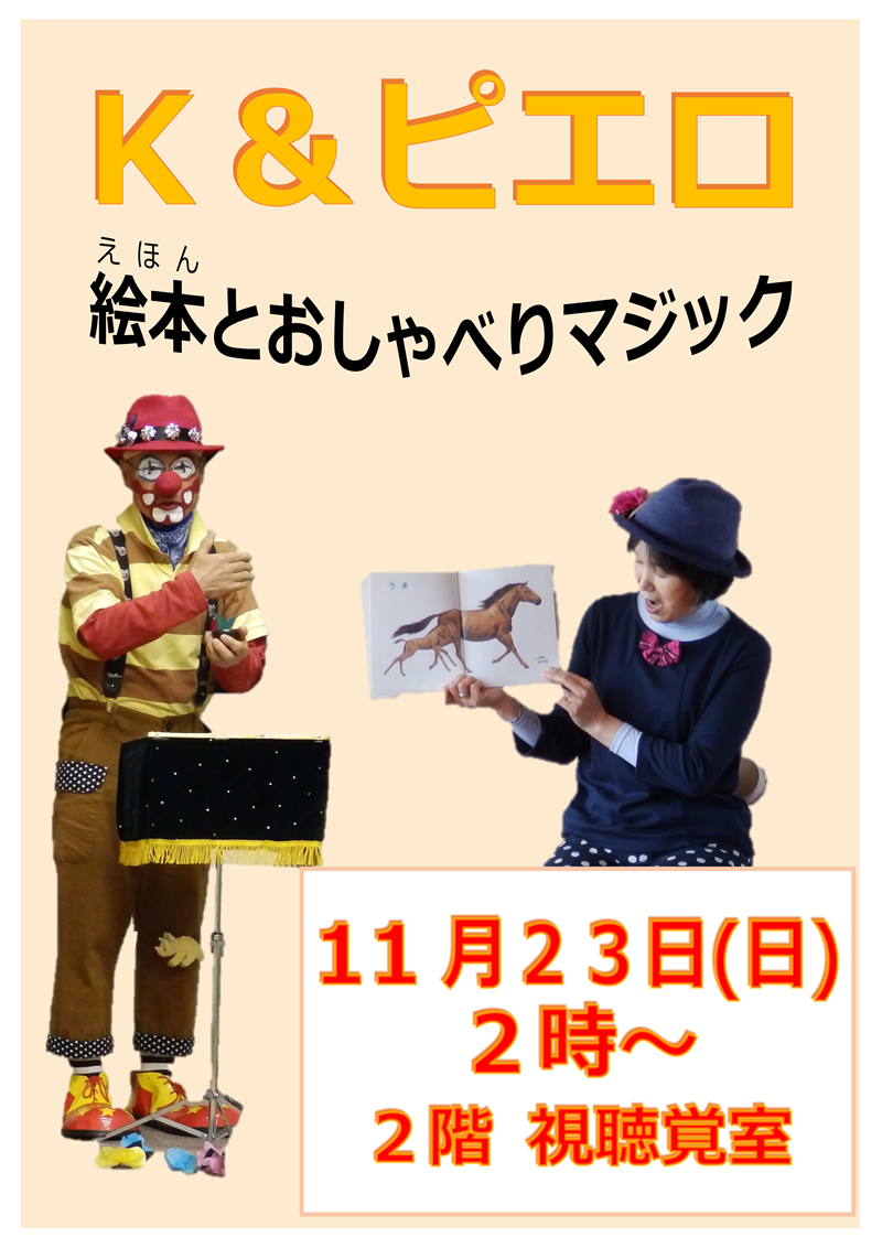 ホーム > イベント情報 > K&ピエロ(令和7年11月23日(日)午後2時~2時30分)