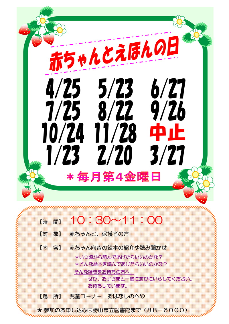 ホーム > イベント情報 > 赤ちゃんとえほんの日(令和8年1月23日(金)午前10時30分~11時)