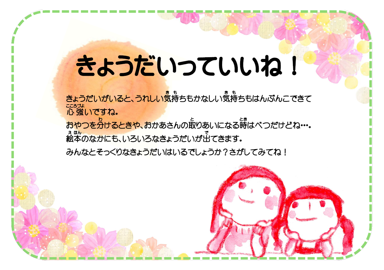 ホーム > 本の特集 > 「きょうだいっていいね!」(児童コーナー・表見せ企画)