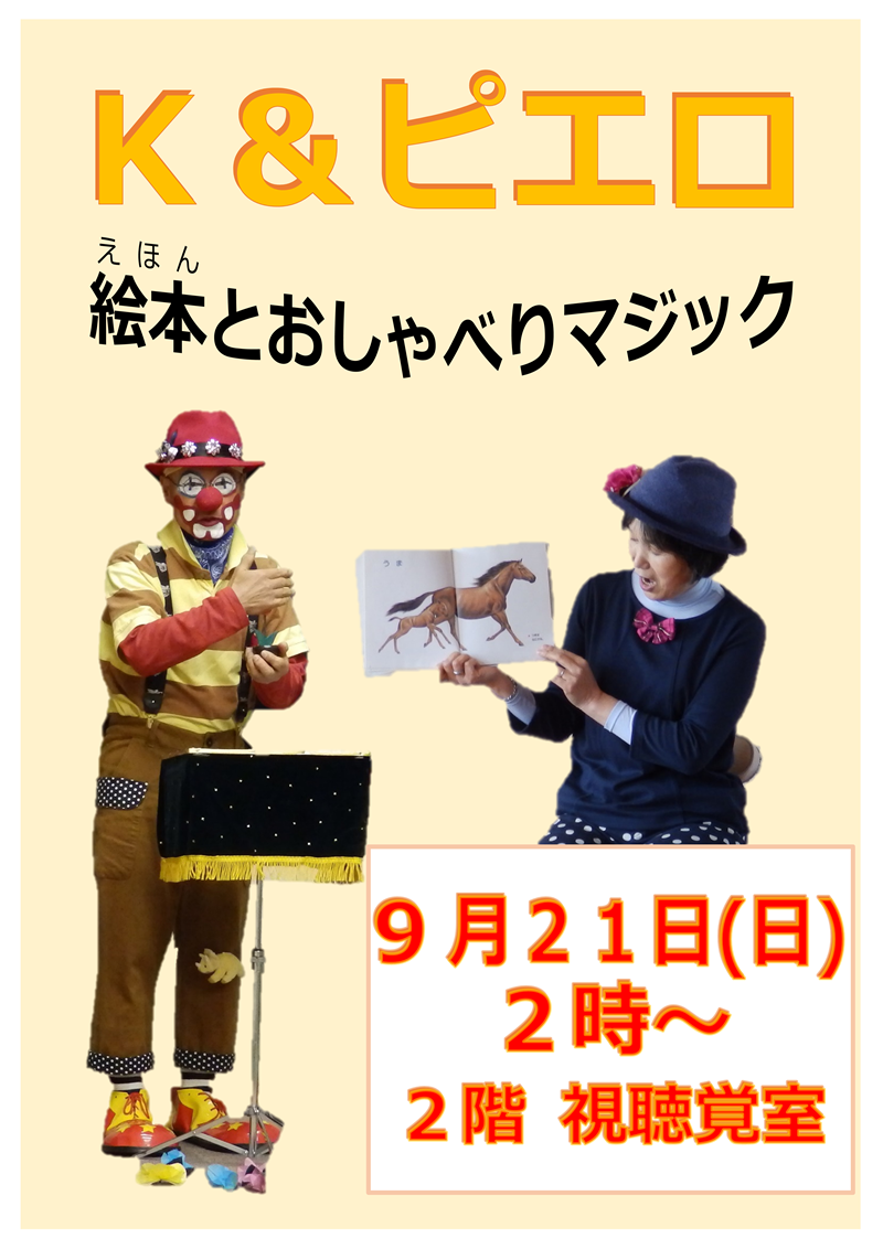 ホーム > イベント情報 > K&ピエロ(令和7年9月21日(日)午後2時~2時30分)