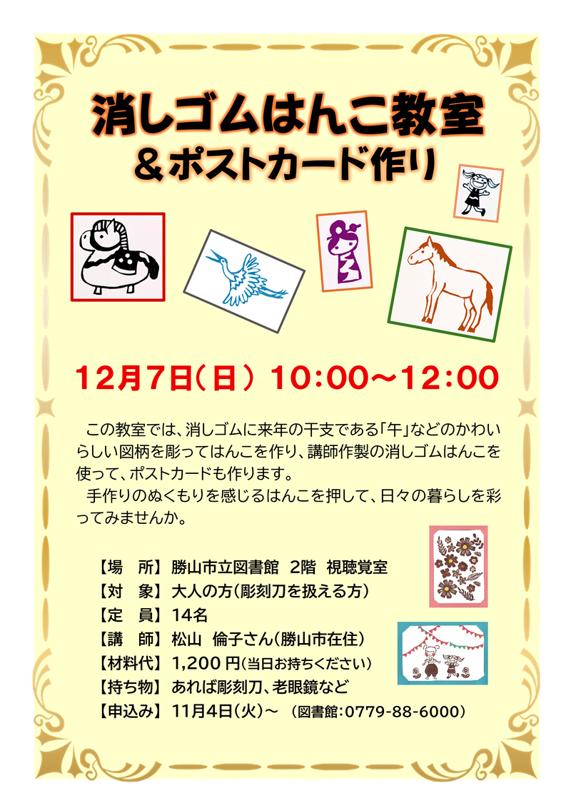 ホーム > イベント情報 > 消しゴムはんこ教室&ポストカード作り(令和7年12月7日 午前10時~12時)
